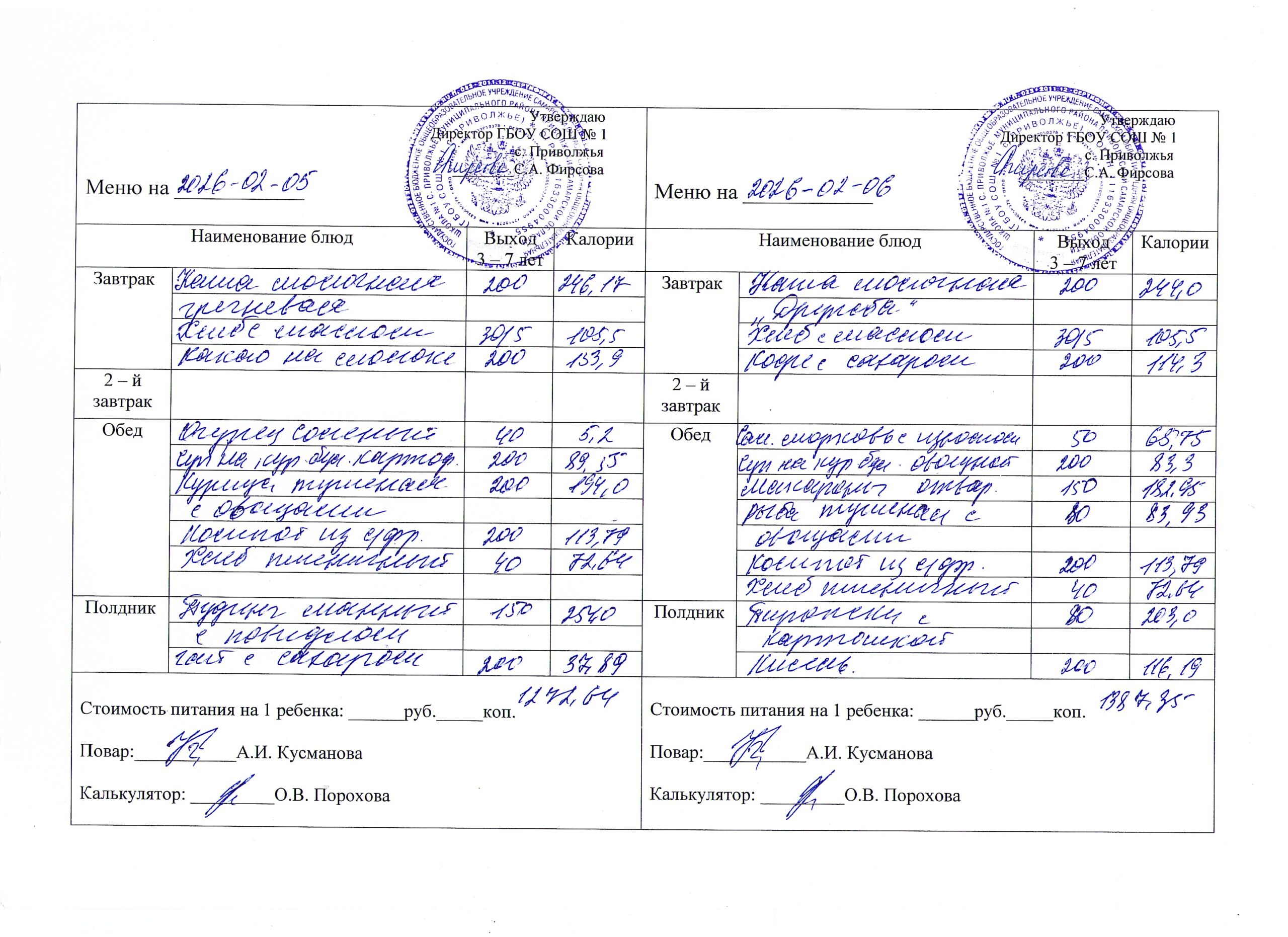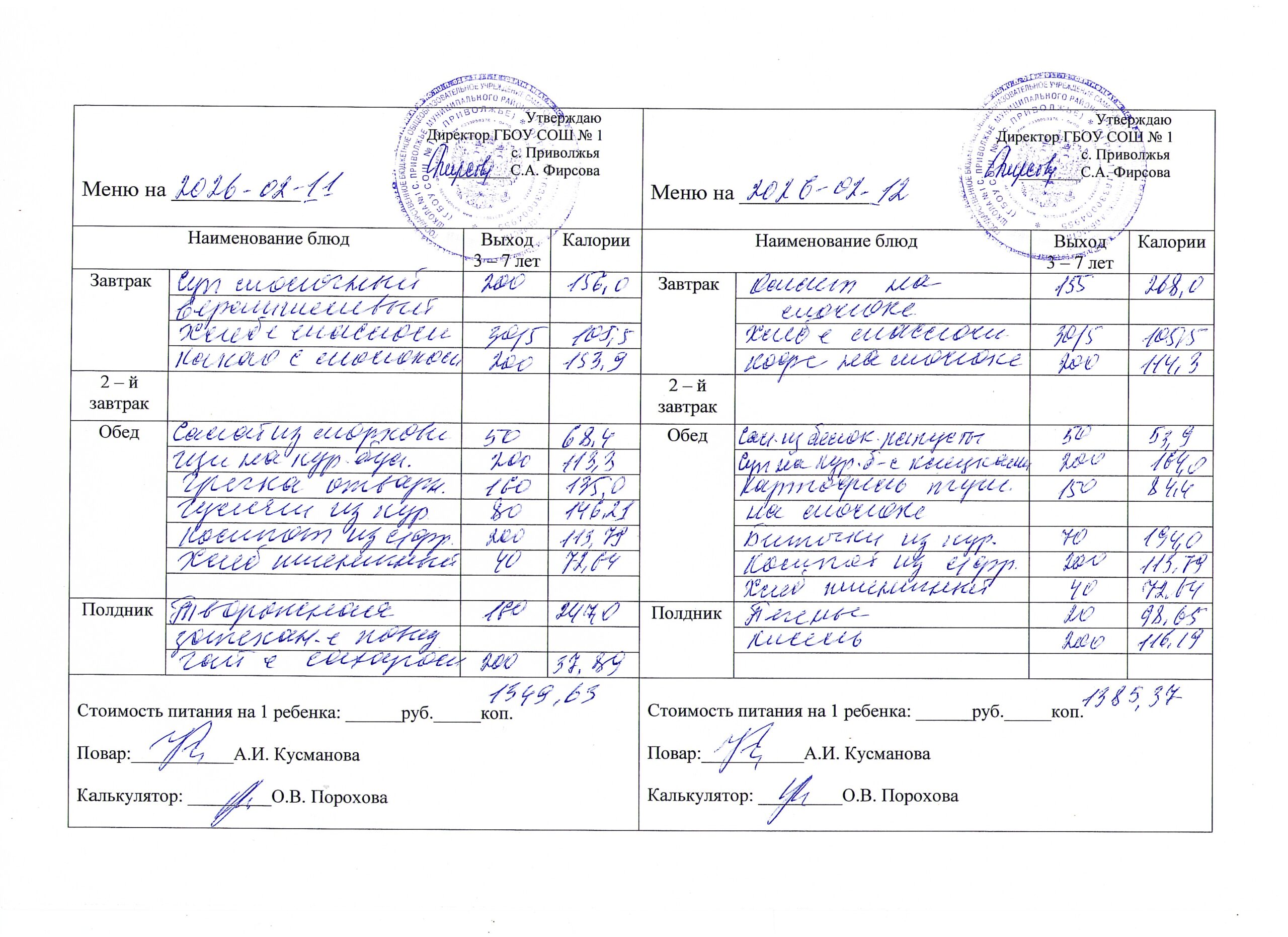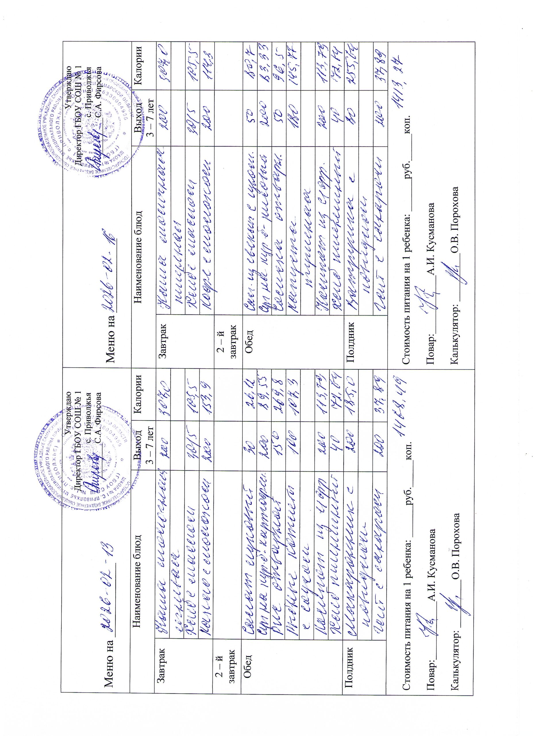 Утвержденное ежедневное меню: соответствует примерному десятидневному меню приготавливаемых блюд. Информация для родителей вывешивается на информационных стендах ежедневно.